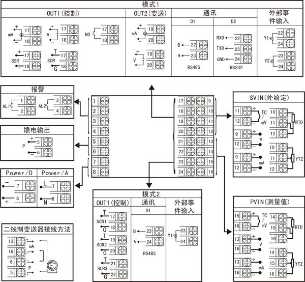 無(wú)輸出 RS-485通迅接口(Modbus) RS232通迅接口(Modbus) RS232C打印接口 外部事件輸入1(強(qiáng)制手動(dòng)) 外部事件輸入2 外部事件輸入3 |